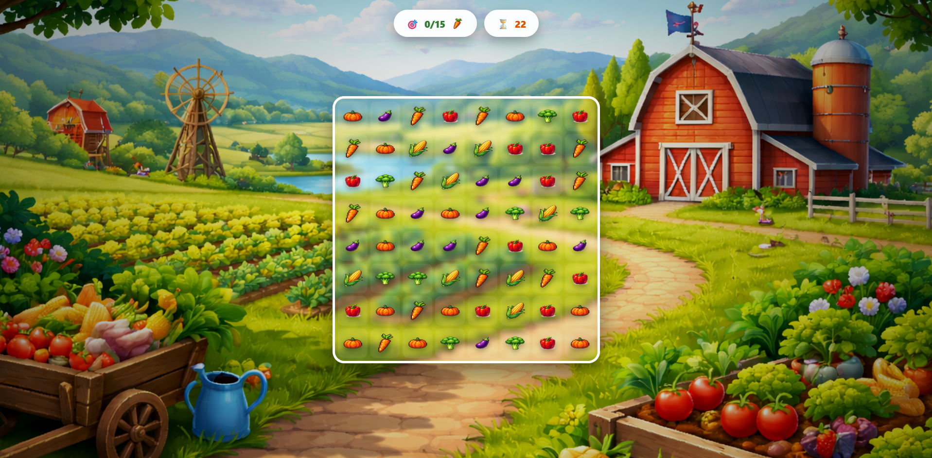Welcome to your farm! Harvest Harmony is an addictive and visually stunning Match-3 puzzle game where your goal is the perfect harvest. Match three or more identical crops, collect the required amount, and become the best farmer in the village!